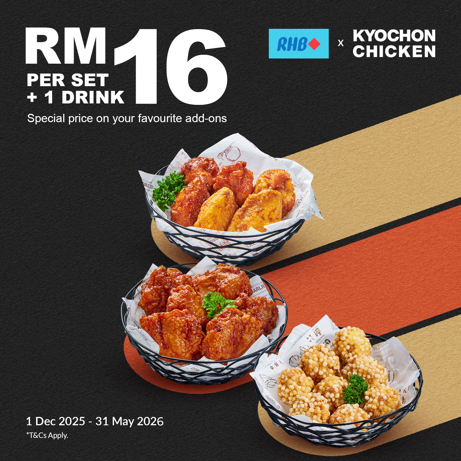 - Available at all KyoChon outlets except Tanjung Pinang and KLIA.